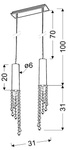 Niezwykle dekoracyjne, proste metalowe klosze zdobione transparentnymi kryształkami efektownie rozpraszającymi strumienie światła, zawieszone na metalowych linkach umożliwiających regulację wysokości.