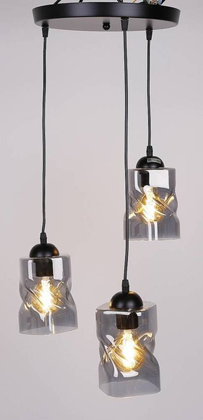 Na czarnej, matowej, metalowej podstawie umieszczony jest czarny przewód zakończony źródłem światła osłonięty ozdobnym, szklanym kloszem.