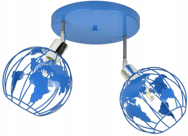 Lampa sufitowa do pokoju chłopca niebieska Zakręcony Globus 2xE27 Led