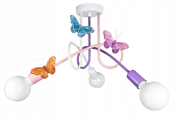 - Kolorowa lampa sufitowa do pokoju dziewczynki Tęczowy Zawijas idealnie sprawdzi się w pokoiku każdej Księżniczki. Uroczym dodatkiem są przepiękne motylki- wyglądają jak żywe. Polska produkcja