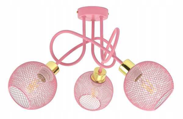 - Zaczarowany Koszyczek to nowoczesna lampa sufitowa do pokoju dziewczynki z trzema ażurowymi koszyczkami w kolorze różowym z złotymi dodatkami. Zapewnia przyjemne, równomierne oświetlenie i nowoczesny dekoracyjny efekt w dziecięcym wnętrzu.