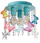 Lampa sufitowa do pokoju dziewczynki miętowa Motylek Kryształ 3xE27