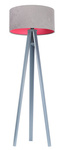 Nowoczesna lampa podłogowa trójnóg szary abażur, różowy środek