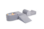 Jasnoszary piankowy plac zabaw do pokoju dziewczynki z suchym basenem z piłkami 100szt w kolorze błekitnym, białym, miętowym, pasteloworóżowym, paslelowożółtym