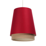 Lampa w stylu Boho podwójny abażur welur i naturalny rattan czerwona